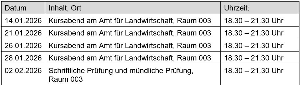 20260114 Sachkunde-Grundschulung mit Abschlussprüfung, Fachrichtung Ackerbau, ab Mittwoch, 14. Januar
